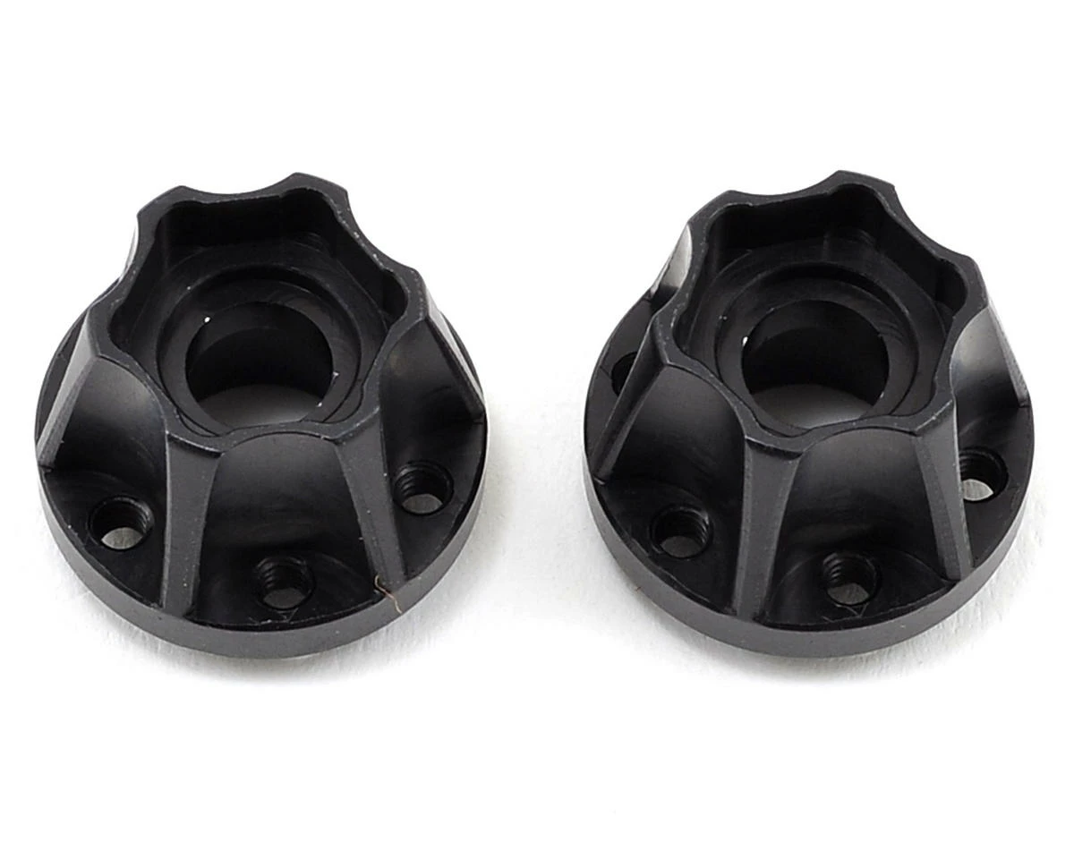 This is a pair of optional Vanquish Products Aluminum SLW 600 Hex Hubs. Personalize your rig with these super slick black anodized aluminum wheel hubs, especially made for 1.9 and 2.2 SLW, OMF, KMC wheels.