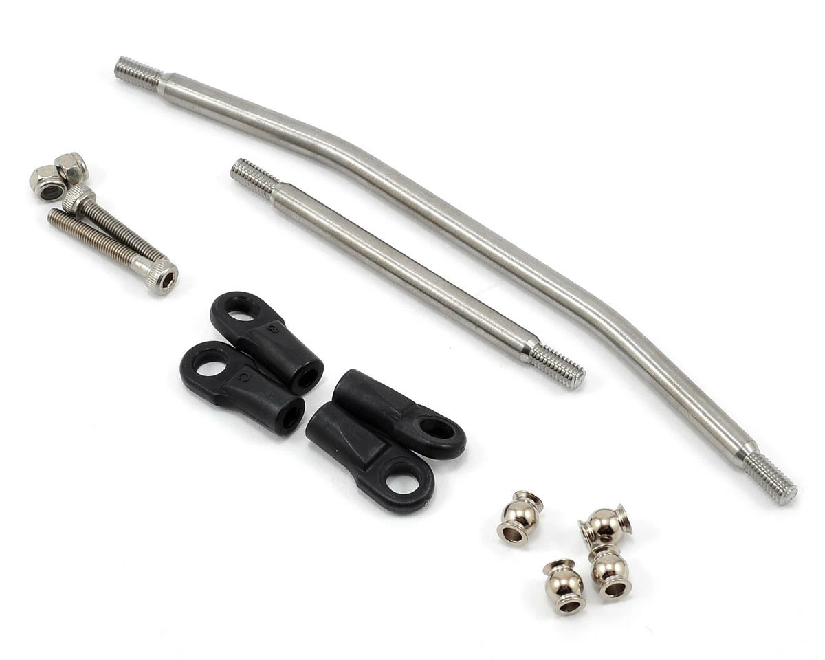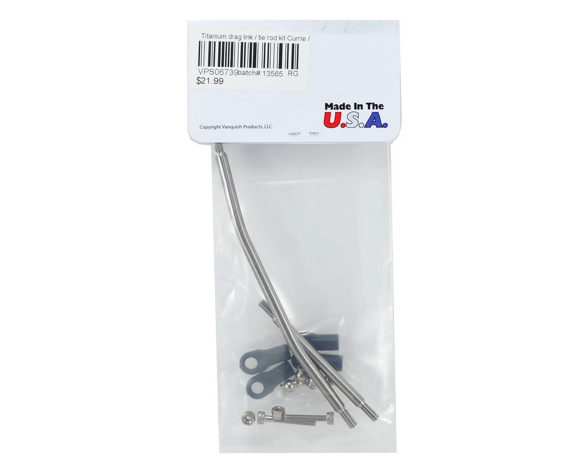 This is an optional Vanquish Products Titanium “Currie” Drag Link & Tie Rod Set, ans is intended for use with the Axial SCX10 equipped with Vanquish Currie Rockjock Axles.