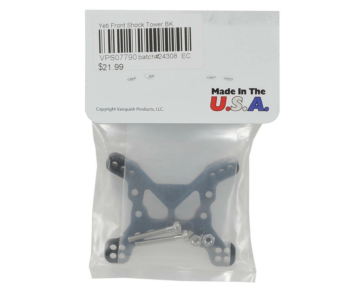 The Vanquish Products Axial Yeti Aluminum Front Shock Tower will improve the looks and overall durability of your Yeti racer. Package includes shock tower and hardware.