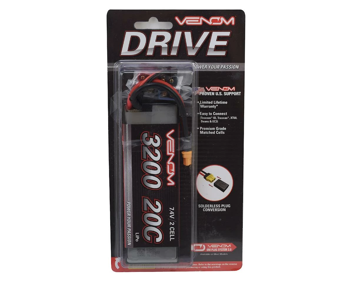 This is the Venom Power 2S Li-Poly 20C 3200mAh car battery pack with universal connector. Designed to compliment today‘s high demand needs for more power and capacity.