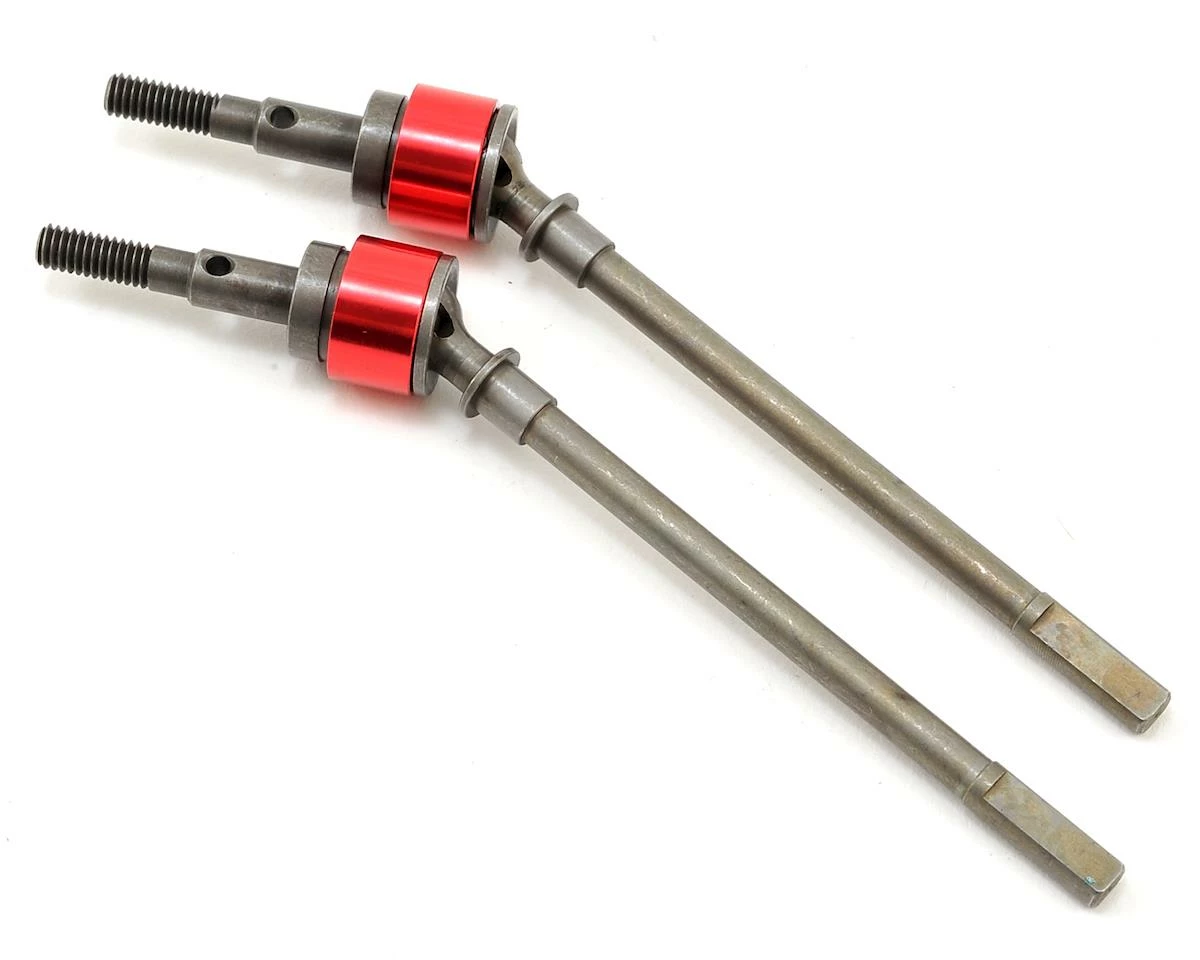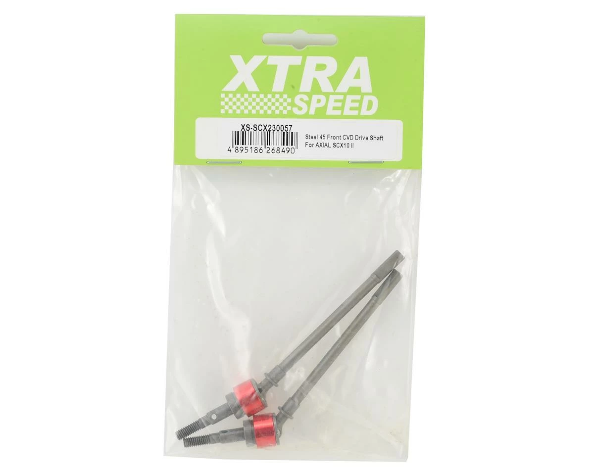 The Xtra Speed SCX10 II #45 Steel Front CVD Drive Shaft is machined from carbon #45 steel to offer a high level of durability and lifespan. The CVD features an aluminum sleeve over the axle to retain the coupler pin and is a direct replacement upgrade for the stock universal driveshafts included with the SCX10 II.