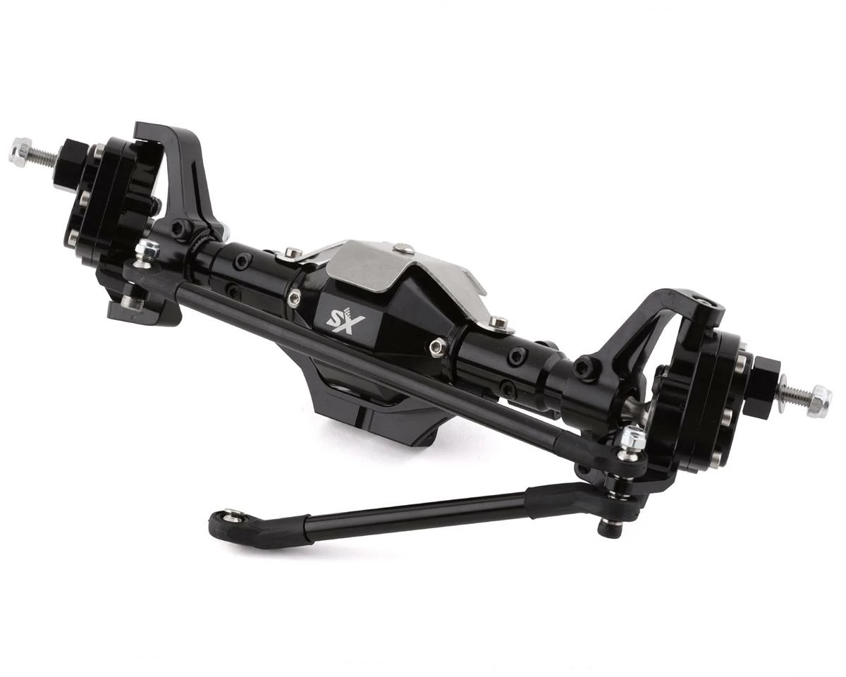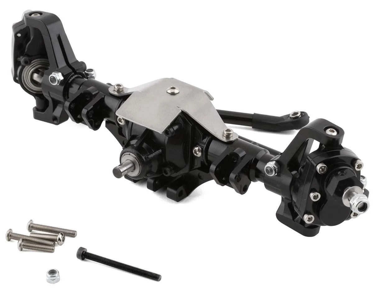 Xtra Speed SCX10 II Complete Aluminum Hi-Lift Front Portal Axle Set. This front axle will allow for more ground clearance and more front low weight on the Axial SCX10 II. Package includes one complete front axle with hardware.