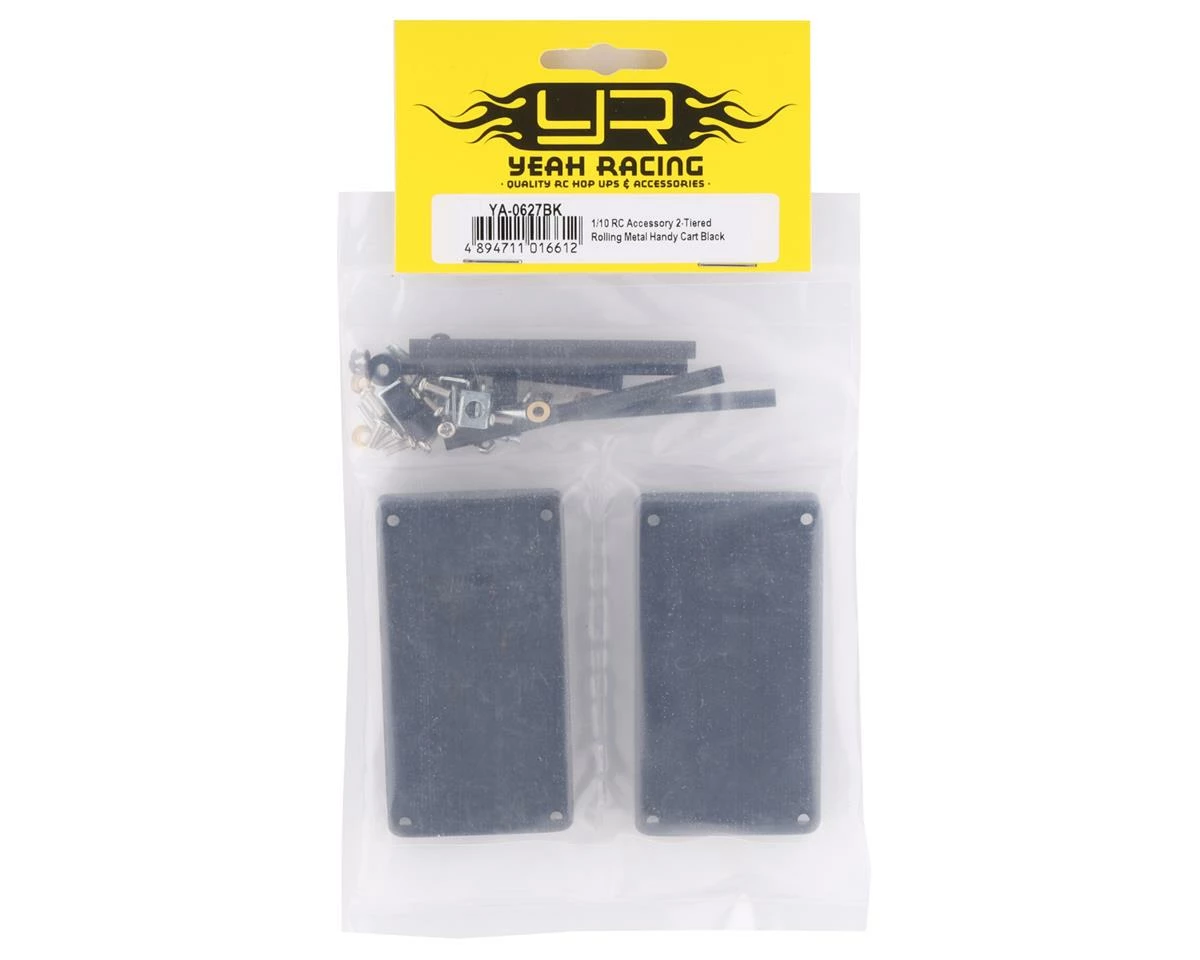 The Yeah Racing 1/10 2 Tiered Metal Rolling Shop Cart Kit is a must have option for any scale garage or even truck bed. Made from metal, this cart features swiveling rollers to aid in movement. Two tiers of trays are used so you can add optional accessories to the trays to add more detail. Package includes one unassembled scale shop cart.