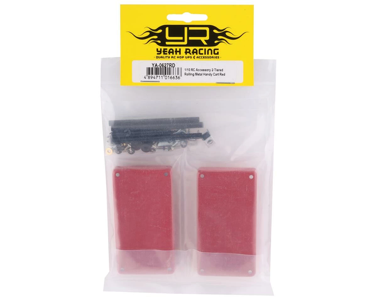 The Yeah Racing 1/10 2 Tiered Metal Rolling Shop Cart Kit is a must have option for any scale garage or even truck bed. Made from metal, this cart features swiveling rollers to aid in movement. Two tiers of trays are used so you can add optional accessories to the trays to add more detail. Package includes one unassembled scale shop cart.