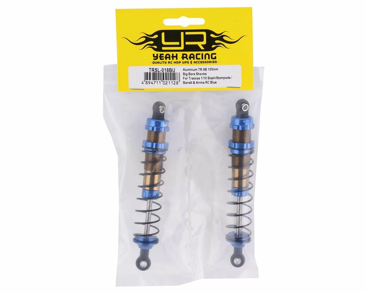 Yeah Racing 105mm Aluminum TR-XB Big Bore Shocks. These optional shocks feature threaded bodies and are intended for the Traxxas Stampede, Slash or Bandit. Package includes two assembled shocks.