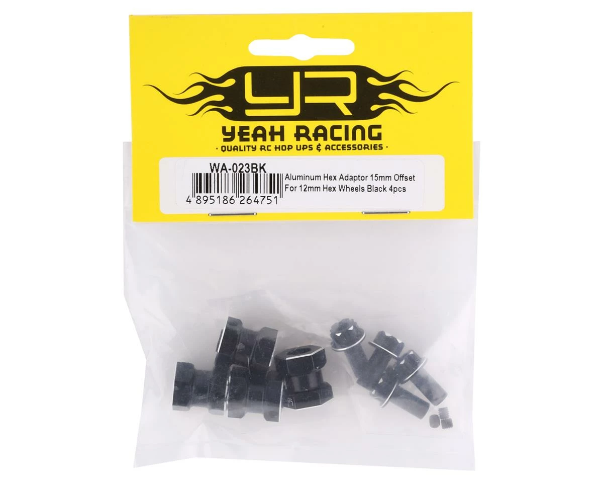 Yeah Racing 12mm Aluminum Hex Adaptors. These optional hexes are intended to add track width to your RC rock crawler. With a wider track width, you can also increase the chassis flex due to a leverage effect of being able to put more force on the outer wheel. This translates to more grip during climbing. Package includes four hex adapters with grub screws.
