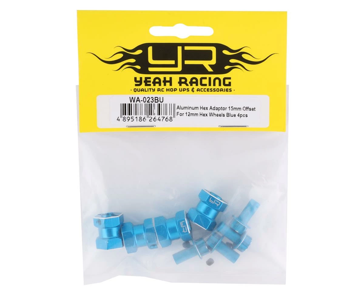 Yeah Racing 12mm Aluminum Hex Adaptors. These optional hexes are intended to add track width to your RC rock crawler. With a wider track width, you can also increase the chassis flex due to a leverage effect of being able to put more force on the outer wheel. This translates to more grip during climbing. Package includes four hex adapters with grub screws.