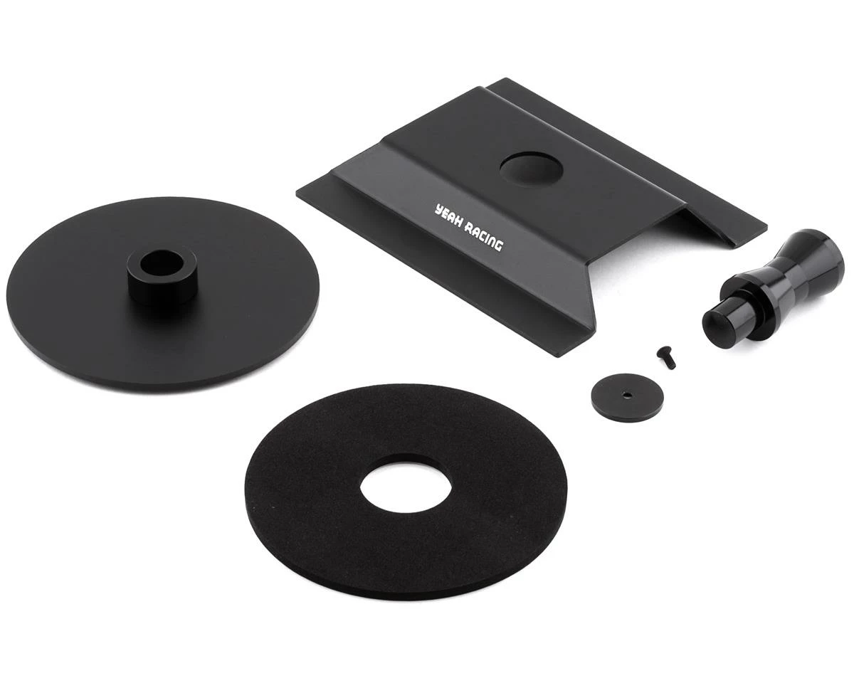 The Yeah Racing Aluminum 1/10 Car Stand is a great tool to aid in installing parts or performing maintenance. This car stand features a rotating plate that will allow you to transition from one side of the car to the next. A soft upper pad is used to keep your car in place and not sliding across your pit area. Package includes one unassembled car stand.