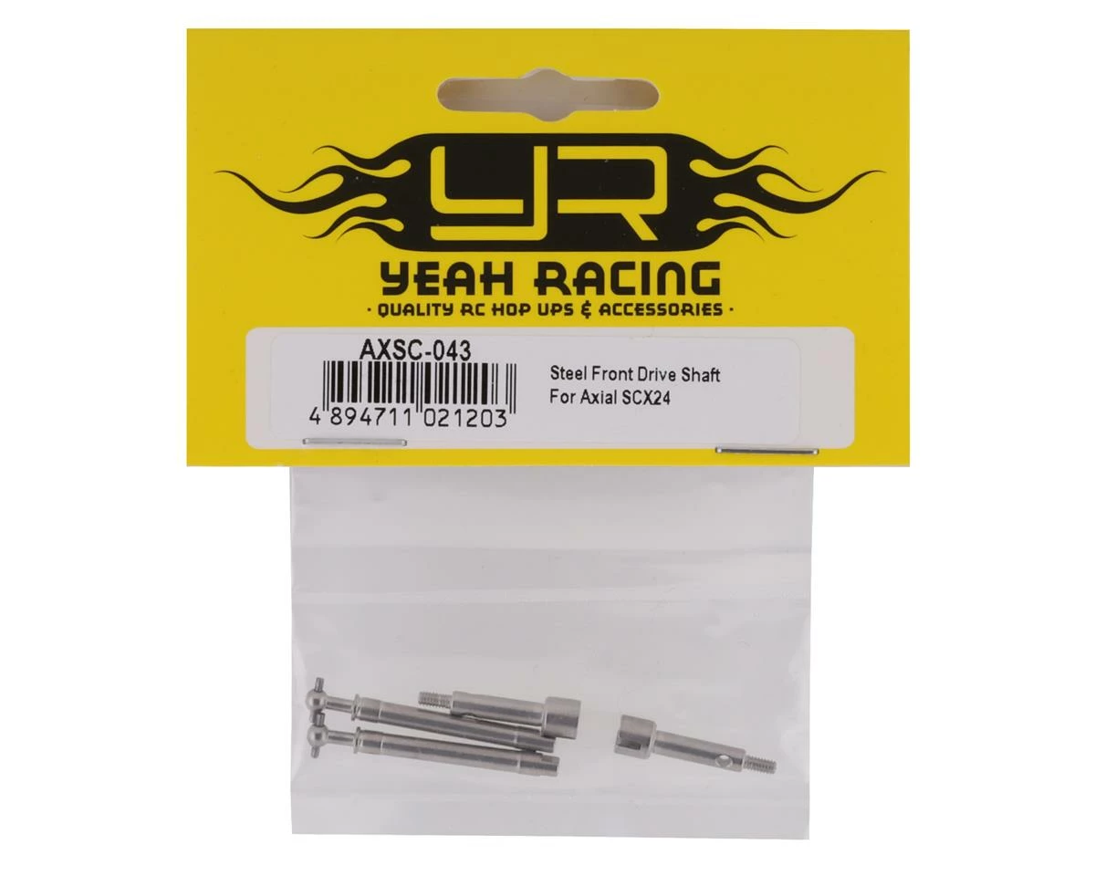 Yeah Racing SCX24 Steel Front Driveshafts are a heavy duty driveshaft option compatible with all SCX24 models. Package includes two driveshafts and two axle shafts.